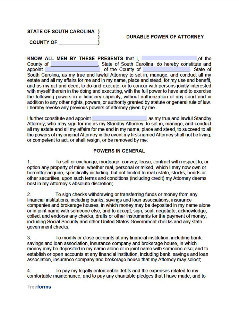 South Carolina Durable Power Of Attorney Form 2025 Dulce Phylis