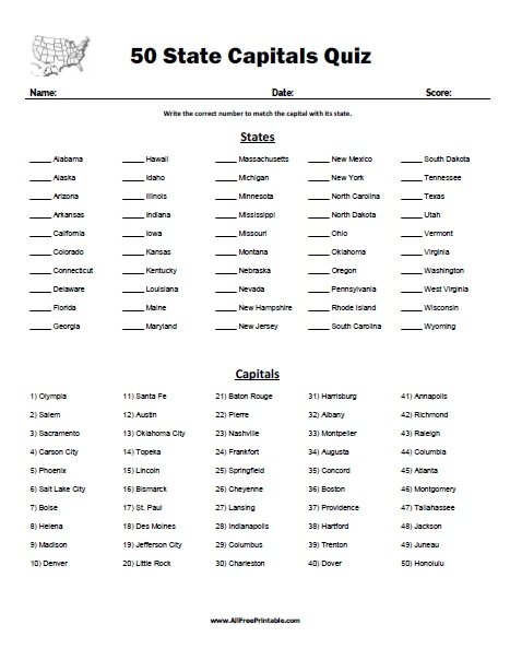 Test Your Knowledge with Our States And Capitals Quiz Printable Free