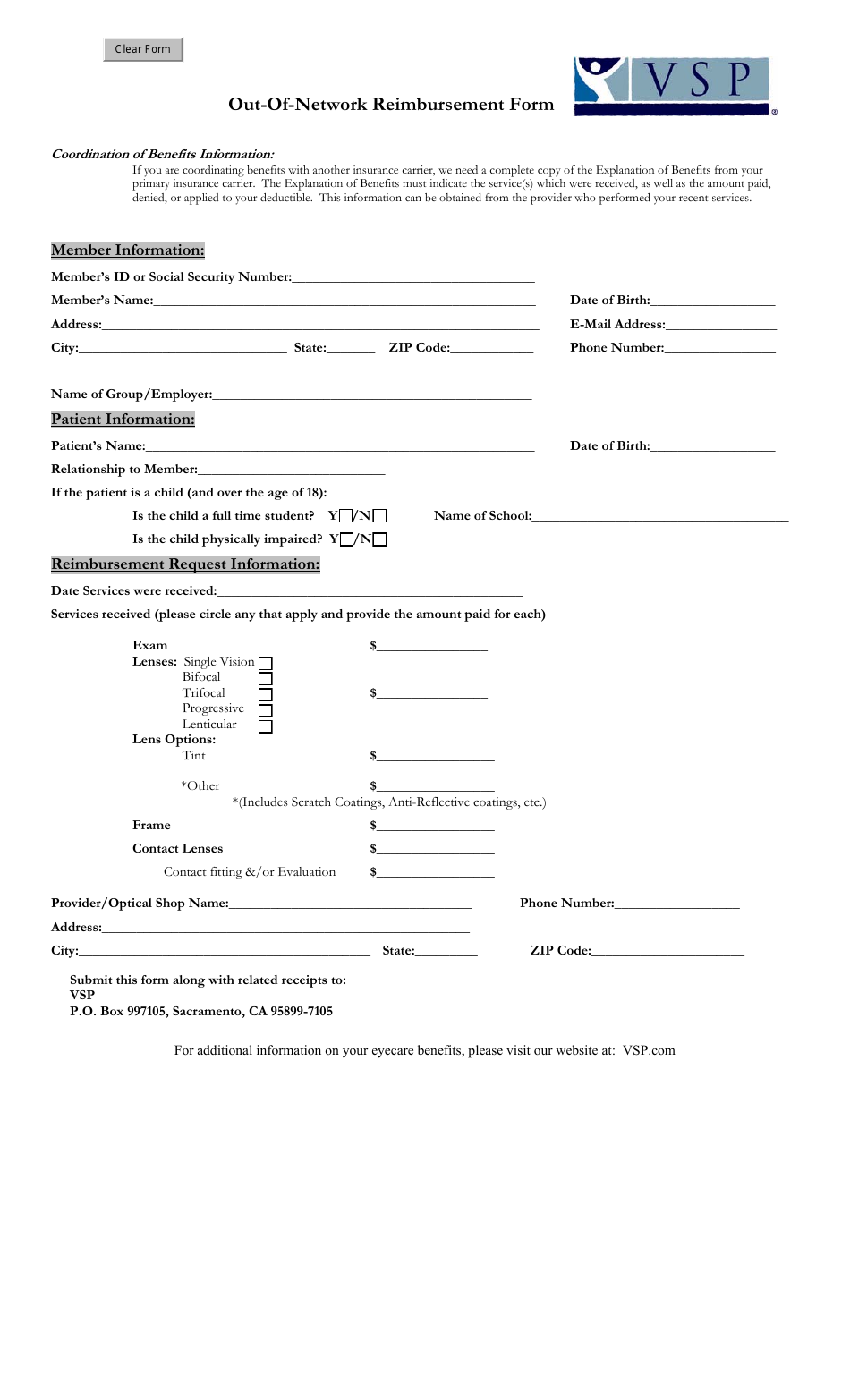 Vsp Printable Claim Form Printable Forms Free Online