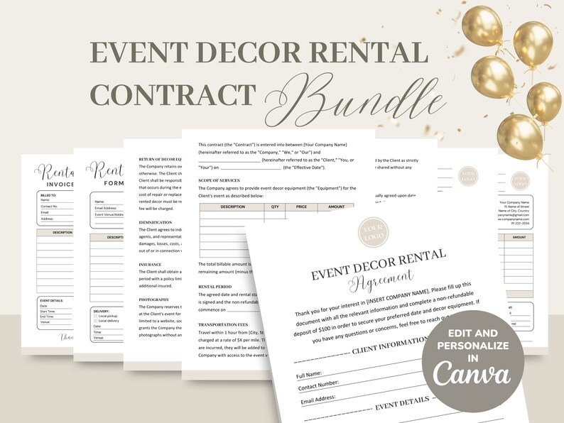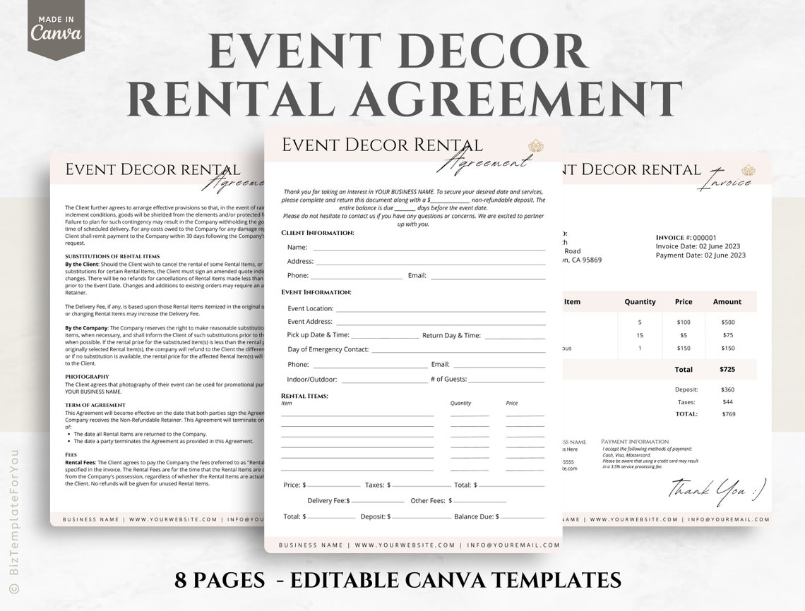 Editable Event Decor Rental Agreement Party Equipment Rental Etsy