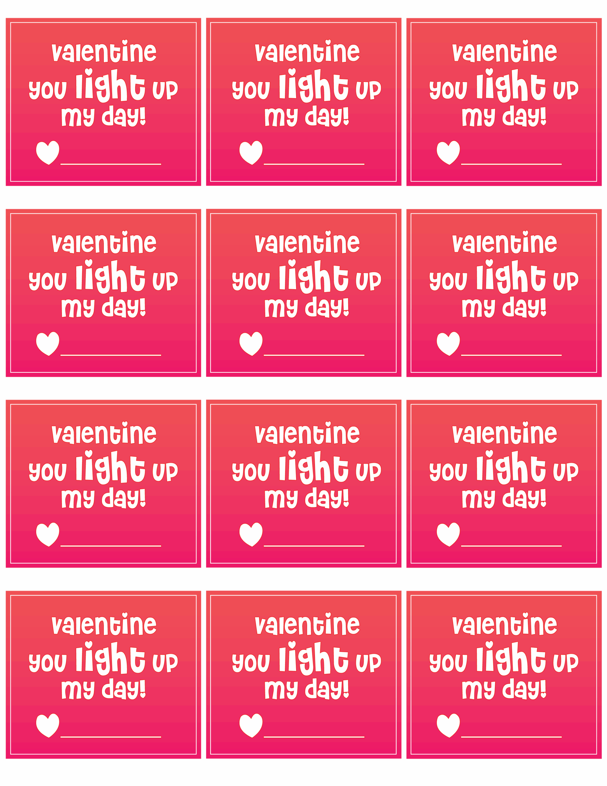 Valentine You Light Up My Day Precision Printables